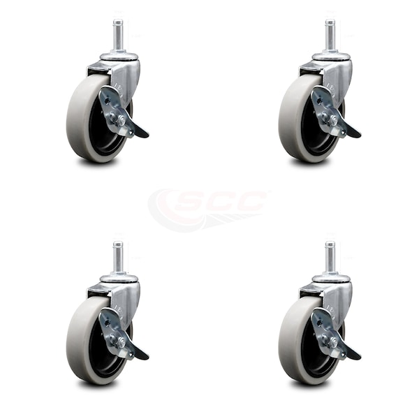 High quality casters for Choice plastic bussing or utility carts. Listing is for a set of four (4) Service Caster Series #05 swivel casters with brakes and 4 inch diameter by 7/8 inch wide thermoplastic rubber tread on polyolefin core wheels. These Choice replacement casters have 7/16 inch by 1-3/8 inch grip ring stems. Supports 500 total pounds (lbs.) at 125 pounds (lbs.) per caster. When searching for a reliable and durable solution to your Choice Bussing utility cart replacement caster needs, consider Service Caster Series 05 grip ring thermoplastic rubber wheel casters. The Service Caster Series #05 features non-marking thermoplastic rubber wheels with easy maneuverability for a smooth and quiet ride. The zinc plated finish provides durability under any condition. These versatile casters are ideal for a wide range of applications, but are commonly used on Choice Bussing utility carts. Service Caster is unsurpassed in quality, reliability, and excellent customer service. Count on us to move you forward.