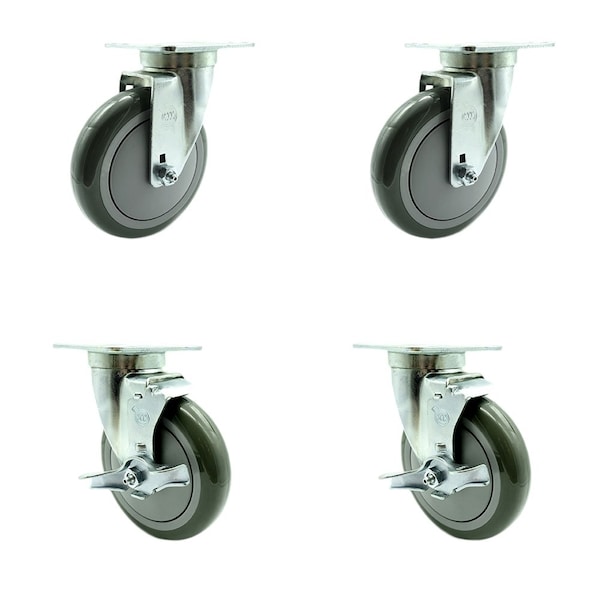 Listing is for four 4 Service Caster Series #20 swivel caster set with 2 top lock brakes and a 5'' diameter by 1-1/4'' wide gray polyurethane wheels capable of supporting 350 lbs. per caster. 369CASTER4 replacement part fits Cooking Performance Group old-style CPGV series ranges red knobs. When searching for a reliable and durable solution to your Cooking Performance Group replacement caster needs, consider Service Caster Series 20 top plate polyurethane tread on polyolefin core wheel casters. The Service Caster Series #20 features polyurethane tread on polyolefin core wheels that offer a softer tread for smoother travel while also resisting damage from debris. Finely crafted with a bright zinc plated finish and heat-treated ball bearing raceway, these Service Caster high performance Cooking Performance Group replacement casters balance high pay loads with smooth and quiet operation. These versatile casters are ideal for a wide range of applications, but are commonly used on Cooking Performance Group old-style CPGV series ranges red knobs. Service Caster is unsurpassed in quality, reliability, and excellent customer service. Count on us to move you forward.