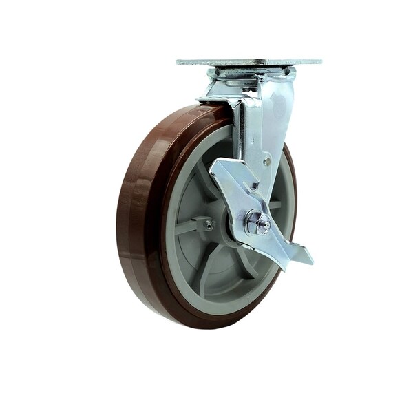 Listing is for one 1 Service Caster Series #30 swivel caster with a top lock brake and 8'' diameter by 2'' wide polyurethane wheel capable of supporting 800 lbs. per caster. HPKE52128 Cres Cor replacement caster. When searching for a reliable and durable solution to your Cres Cor replacement caster needs, consider Service Caster Series 30 top plate polyurethane wheel casters. The Service Caster Series #30 features light weight polyurethane wheels that are resistant to shock, chemicals and abrasion, and finely crafted with a bright zinc plated finish and heat-treated ball bearing raceway. These versatile casters are ideal for a wide range of applications, such as dollies, platform trucks, warehouse carts and freight terminals. Or ensure a smooth and secure ride for food service carts, hotel housekeeping carts, and industrial and commercial equipment. Service Caster is unsurpassed in quality, reliability, and excellent customer service. Count on us to move you forward.