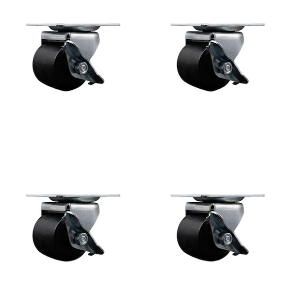 Low Profile Polyolefin 2'' Wheel Top Plate Swivel Caster with Brake Set, 4PK