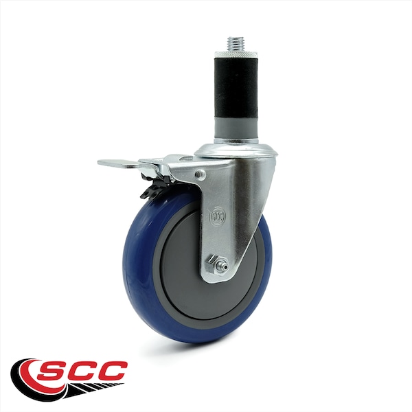 High quality swivel caster with total lock brake for all Regency Work Tables and Equipment Stands. Listing is for one (1) Service Caster Series #20 swivel caster with a total lock brake and a 5 inch diameter by 1-1/4 inch blue polyurethane tread on gray polyolefin core wheel. This Regency Work Table and Equipment Stand replacement caster has a 1-1/2 inch expanding adapter stem and works great on any Regency Work Table and Equipment Stand. Supports 300 pounds (lbs.) per caster. When searching for a reliable and durable solution to your Regency Work Tables and Equipment Stands replacement caster needs, consider Service Caster Series 20 expanding adapter stem polyurethane tread on polyolefin core wheel casters. The Service Caster Series #20 features polyurethane tread on polyolefin core wheels that offer a softer tread for smoother travel while also resisting damage from debris. Finely crafted with a bright zinc plated finish and heat-treated ball bearing raceway, these Service Caster high performance Regency replacement casters balance high pay loads with smooth and quiet operation. These versatile casters are ideal for a wide range of applications, but are commonly used on Regency Work Tables and Equipment Stands. Service Caster is unsurpassed in quality, reliability, and excellent customer service. Count on us to move you forward.