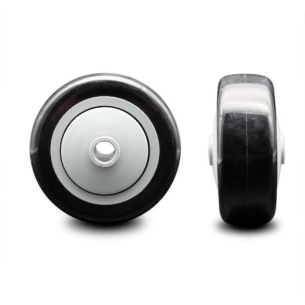 Listing is for one (1) Service Caster 3" diameter by 1.25" tread width black polyurethane on gray polyolefin wheel with precision ball bearing and 3/8" bore. Supports 250 pounds (lbs) per wheel.When searching for a reliable and durable solution for replacement wheels that are non-marking, smooth rolling, and quiet, consider Service Caster’s Polyurethane on Polyolefin core wheel. With a ball bearing with 3/8" bore for axle, Polyurethane is highly resistant to oil, grease, water, and most solvents. Non-marking polyurethane tread mechanically bonded to polyolefin core. Hardness scale 55 +/- 5 Shore (D) Durometer. An excellent choice for clean environments. Service Caster is unsurpassed in quality, reliability, and excellent customer service. Count on us to move you forward.