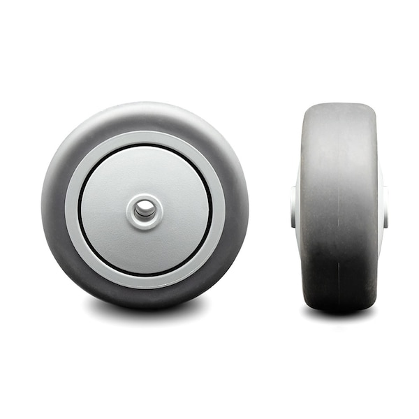 Listing is for one (1) Service Caster 3.5" diameter by 1.25" tread width gray thermoplastic rubber wheel with precision ball bearing and a 3/8" bore. Supports 170 pounds (lbs) per wheel.When searching for a reliable and durable solution for a quiet and smooth rolling wheel that is suitable for a variety of different clean environments, consider Service Caster’s Thermoplastic Rubber on Polyolefin core caster wheel. With a ball bearing with 3/8" bore for axle, thermoplastic tread mechanically bonded to polyolefin core. Thermoplastic rubber is highly resistant to oil, grease, water, and most solvents. Hardness scale 70 +/- 5 Shore (A) Durometer. An excellent choice for clean environments. Service Caster is unsurpassed in quality, reliability, and excellent customer service. Count on us to move you forward.