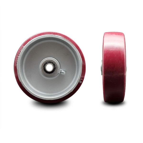 Listing is for one (1) Service Caster 6" diameter by 2" tread width Polyurethane tread on Aluminum wheel with a precision ball bearing and 1/2" bore. Supports 1200 pounds (lbs) per wheel.When searching for a reliable and durable solution to your wheel needs, rely on Service Caster’s polyurethane tread on aluminum core wheels. With a precision ball bearing with a 1⁄2” bore and a polyurethane tread that is chemically bonded to an aluminum core, these wheels provide a smooth roll over uneven surfaces without marking or marring floors. These versatile wheels are ideal for a wide range of applications like dollies, platform trucks, warehouse carts and freight terminals, or ensure a smooth and secure ride for food service carts, hotel housekeeping carts, and industrial and commercial equipment. Even drywall carts, welding carts, and wall panel carts will be ready to roll. Service Caster is unsurpassed in quality, reliability, and excellent customer service. Count on us to move you forward.