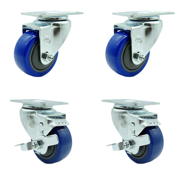 Tool Box Caster Wheel Set 3.5'' Blue Polyurethane Swivel Casters, 4PK