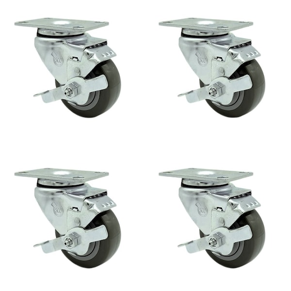 Tool Box Caster Wheel Set 3.5'' Gray Polyurethane Swivel Casters, 4PK