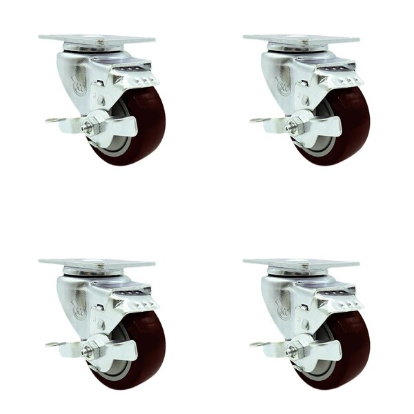 Tool Box Caster Wheel Set 3.5'' Maroon Polyurethane Swivel Casters, 4PK