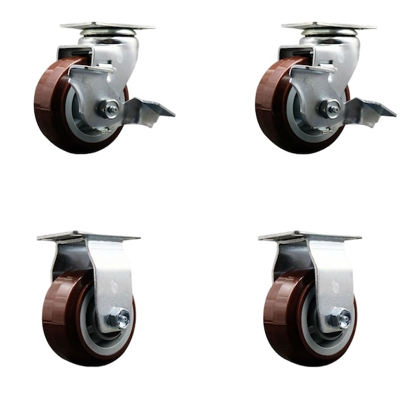 Tool Box Caster Wheel Set 4'' Maroon Polyurethane Swivel Casters, 4PK