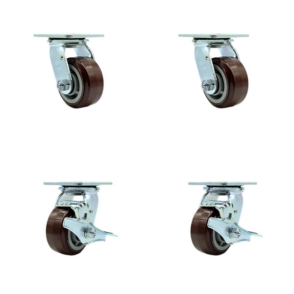 Tool Box Caster Wheel Set 4'' Maroon Polyurethane Swivel Casters, 4PK