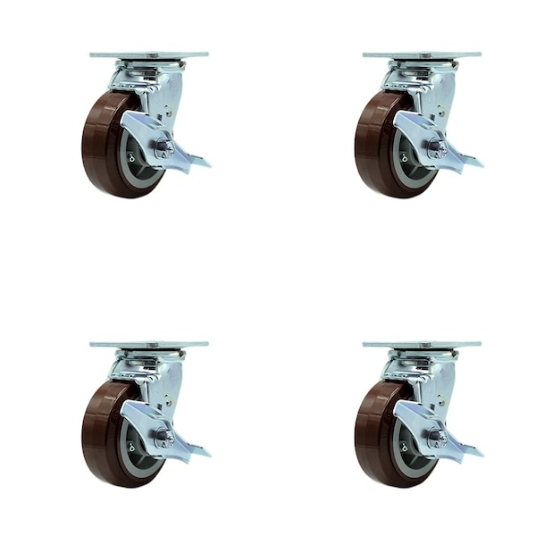 Tool Box Caster Wheel Set 5'' Maroon Polyurethane Swivel Casters, 4PK