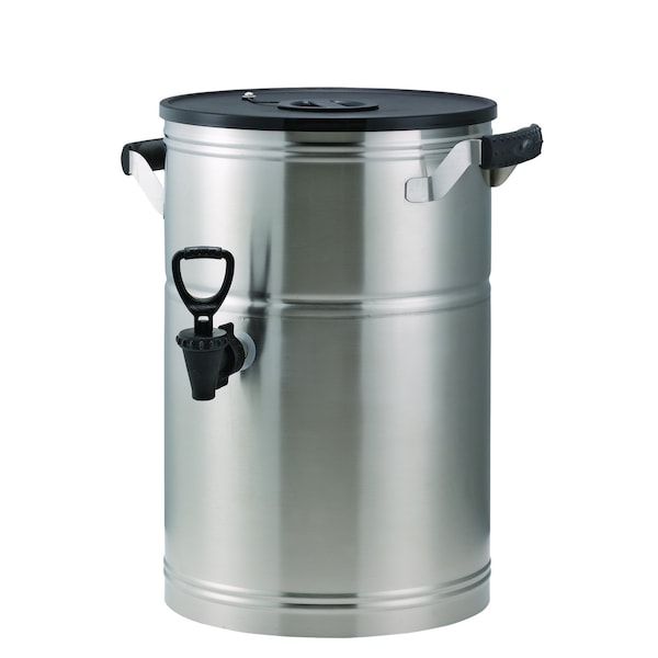 Our Round Tea Urns freature a cylindrical stainless steel body to eliminate leaks and staffered rubber grip handles to transport a filled urn to high counter tops or buffet tables. Comes with a plastic brew-thru lid for direct brewing. Constructed of 18/8 stainless steel. Staggered rubber grip handles for easy transport. Hand wash