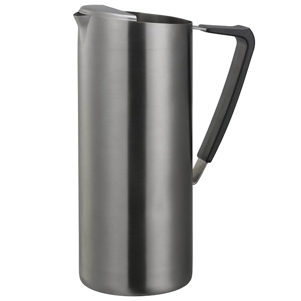 This Slim Water Pitcher in Dark Tungsten offers an industrial-chic finish thats both rugged and refined. Its slim profile supports efficient use of tabletop space, while the over-molded rubber handle enhances comfort and pouring control. Ideal for stylish restaurant setups or on-trend hotel beverage stations, it includes an integrated ice guard for mess-free service and is fully dishwasher safe for practical upkeep.