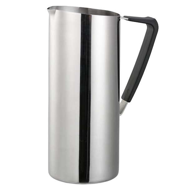Sleek and efficient, this Polished Stainless Slim Water Pitcher is ideal for fast-paced beverage service where quick pouring is a priority. Without an ice guard, the flow remains unrestricted. The over-molded rubber handle improves grip and comfort, while the durable stainless steel body delivers style and functionality in one dishwasher-safe package.