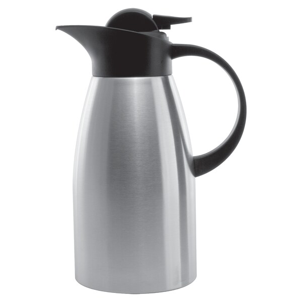 The Stainless Touch Carafe features an unbreakable stainless liner with vacuum insulation that retains hot or cold temperatures for 4-6 hours. Its newly designed, stay-clean lid allows liquid to pour under it, not through it, creating a more sanitary server.