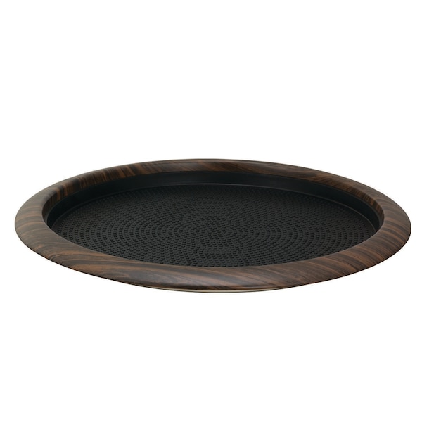 Tray with Removable Insert, 12" Round, Stainless Steel, Dark Wood