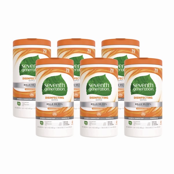 Botanical Disinfecting Wipes, 7 x 8, Lemongrass Citrus, 70 Count, 6PK