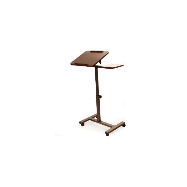 SEVILLE CLASSICS TILTING SIT-STAND LAPTOP DESK CART WITH MOUSE PAD TABLE, WALNUT WORK THE WAY YOU WANT WITH SEVILLE CLASSICS SIT-STAND COMPUTER DESK CART AND SIDE TABLE. EASILY MOVE YOUR LAPTOP OR WRITING WORKSTATION TO ANY SPACE IN YOUR HOME, DORM, OR OFFICE. A LARGE MAIN DESK AREA WITH AN INDEPENDENT SIDE TABLE FITS FULL-SIZE LAPTOP COMPUTERS AND MICE. THE MAIN TABLE ALSO TILTS FOR MAXIMUM ERGONOMIC COMFORT WHILE COMPUTING OR WRITING. ENJOY THE FREEDOM OF HAVING A MOBILE DESK ON ROLLING CASTERS WITH THE ABILITY TO ADJUST TO A SITTING OR STANDING POSITION. FEATURES:
