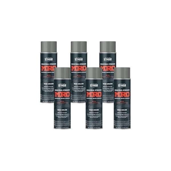 MRO Industrial High-Solids Spray Paint, ANSI 61 Gray, 16 oz, 6PK