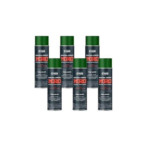 MRO Industrial High-Solids Spray Paint, Cascade Green, 16 oz, 6PK