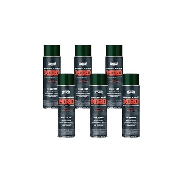 MRO Industrial High-Solids Spray Paint, Dark Green, 16 oz, 6PK