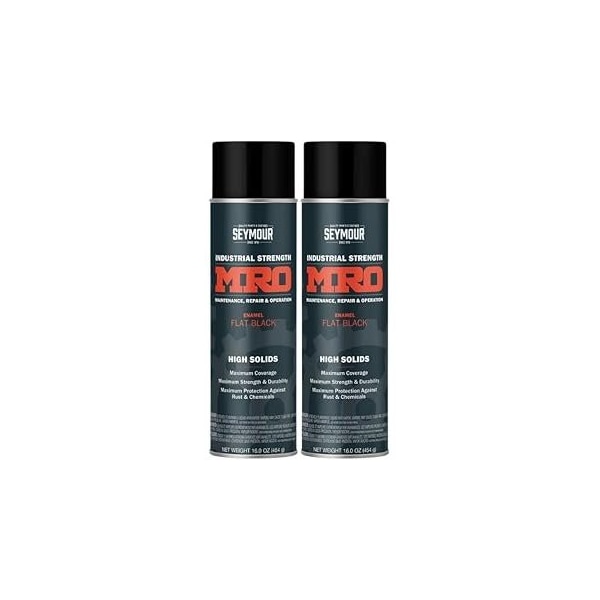 MRO Industrial High-Solids Spray Paint, Flat Black, 16 oz, 2PK