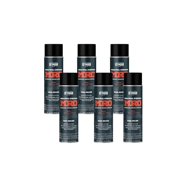 MRO Industrial High-Solids Spray Paint, Flat Black, 16 oz, 6PK