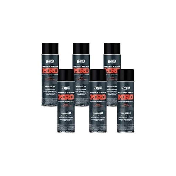 MRO Industrial High-Solids Spray Paint, Gloss Black, 16 oz, 6PK