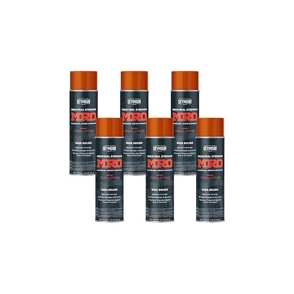 MRO Industrial High-Solids Spray Paint, Omaha Orange, 16 oz, 6PK