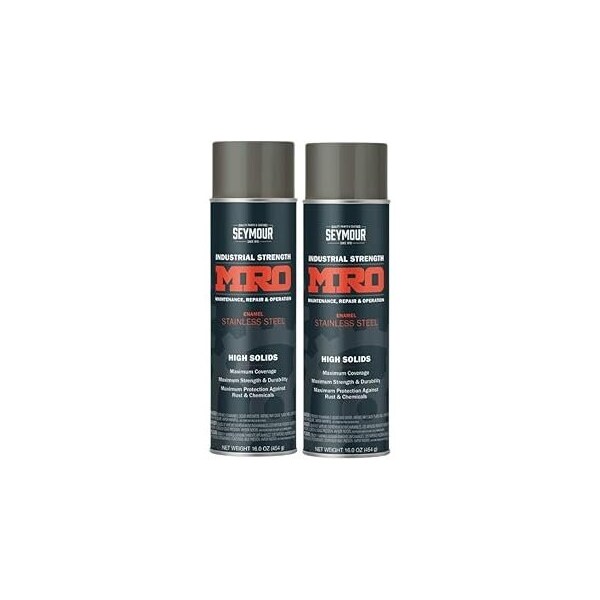 MRO Industrial High-Solids Spray Paint, Stainless Steel, 16 oz, 2PK