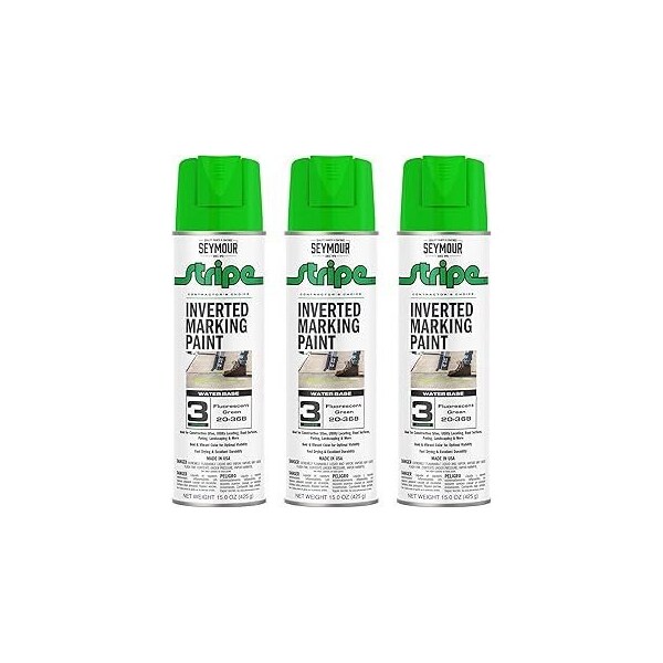 Stripe 3-Series Inverted Ground Marking Paint, Florescent Green net 15oz., 3PK