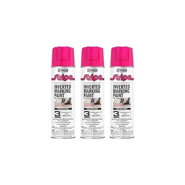 Stripe 3-Series Inverted Ground Marking Paint, Florescent Pink net 15oz., 3PK