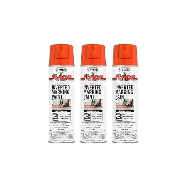 Stripe 3-Series Inverted Ground Marking Paint, Florescent Red-Orange net 15oz., 3PK