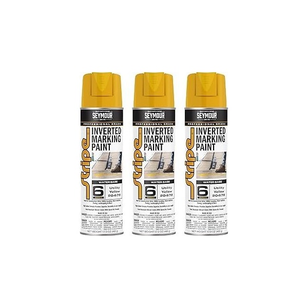 Stripe 6-Series Inverted Ground Marking Paint, Utility Yellow net 17oz., 3PK