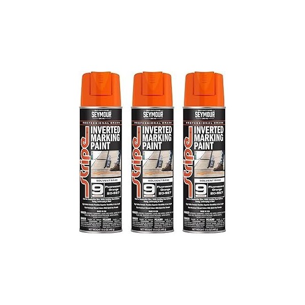 Stripe 9-Series Inverted Ground Marking Paint, Fluorescent Orange net 17oz., 3PK
