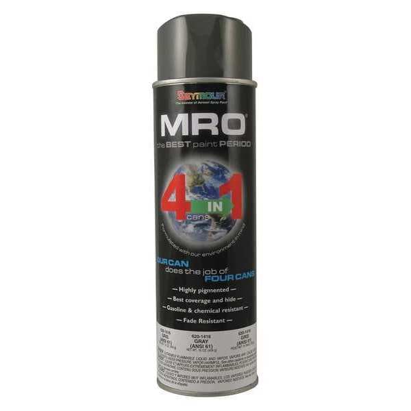 Spray Paint,Gray, Opacity 100 Percent, Maximum Dry Film Thickness 1.5 mil, Coating Application General Purpose Spray Paint, Color Family Gray, Compatible Surface Material Metal, Wood, Sheen High-Gloss, Finish Texture Smooth, Resin Type Chain Stopped Alkyd, Color ANSI 61 Gray, Container Size 20 fl oz, Coverage Area 18 sq ft, Base Type Solvent, Dry Time 30 min, Use Location Exterior, Sub Brand MRO, Container Type Aerosol Can, Dry Time Tack Free 30 min, Dry Time to Recoat Before 1 hr or After 48 hr