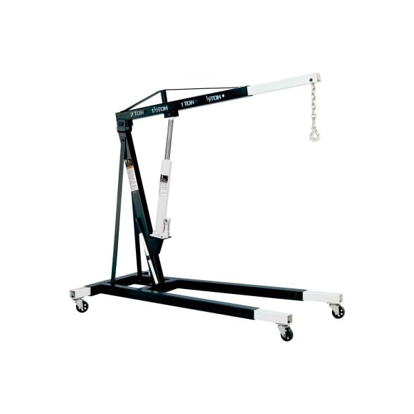 Omega 2 ton engine crane - 44020 heavy duty welded construction with rugged reinforced tubular steel. Metered control release valve for lowering boom at a precisely-controlled rate of speed. Special 8 ton hydraulic long rams are equipped with a patented built-in by-pass mechanism. Front base width 29" - 33-7/8"; rear base width 34-5/8" - 53-1/8". 3-1/2" wheel diameter.