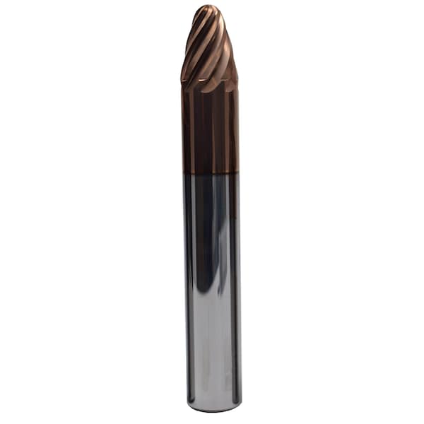 SGS, 45700, End Mill, Ball Nose, Series: 67B, 2.283 in Overall Length, 0.374 in Length of Cut, 4 Flutes, Right Spiral Flute, 0.236 in Shank Diameter, 20 deg Helix Angle, Straight Shank, Carbide, TH Coated