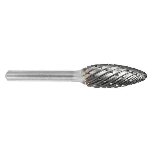 Carbide Bur, End Type Pointed, Cut Type Steel, Shank Dia. 1/4 in, Head Dia. 5/16 in, Head Length 3/4 in, Included Angle Not Applicable, Overall Length 2 1/2 in, Trade Number SH-2, Primary Material Application Cast Iron, Steel, Head Shape Flame, Operating Speed - Maximum 60,000 RPM, System of Measurement Inch, Coating Bright (Uncoated), Head Material Carbide, Shank Material Steel