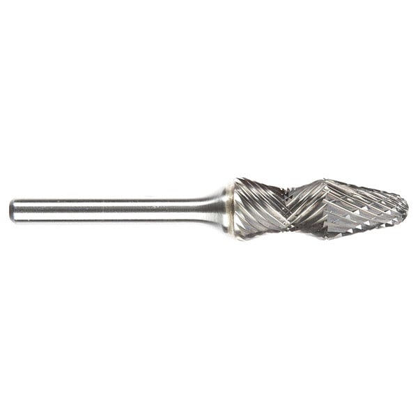 Carbide Bur, End Type Radius, Cut Type Double, Shank Dia. 1/4 in, Head Dia. 1/2 in, Head Length 1 1/4 in, Included Angle 14 Degrees , Overall Length 3 1/4 in, Trade Number SL-5RA, Primary Material Application Ferrous Metals, Non-Ferrous Metals, Head Shape Cone, Operating Speed - Maximum 28,000 RPM, System of Measurement Inch, Coating Bright (Uncoated), Head Material Carbide, Shank Material Steel