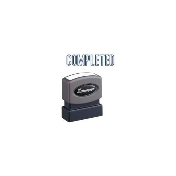 Xstamper Pre-Inked Message Stamp, COMPLETED, 1-5/8" x 1/2", Blue