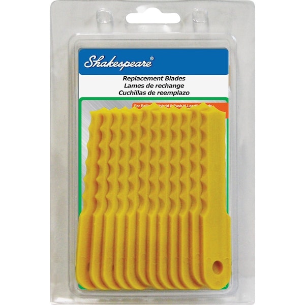 Shakespeare Push-N-Load Replacement Blades for the Push-N-Load 3-Blade trimmer head are designed to last longer than line. The serrated edges are sharp enough to cut through grass and light brush.
