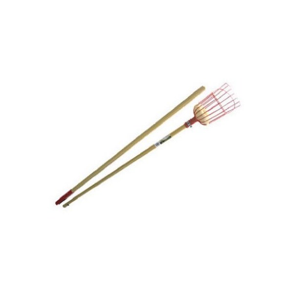Green Thumb, 8', Fruit Harvester, Colorful Vinyl Coated Head, Heavy Wire Construction, 2 Piece 8' Wood Handle, Cushion Prevents Bruising