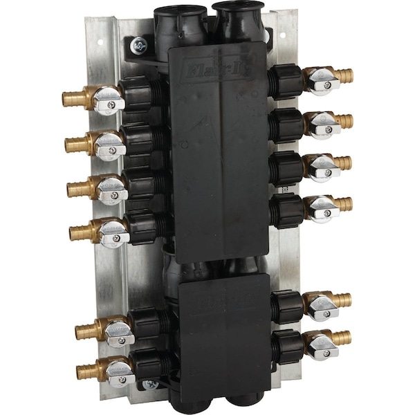 12 Port Barb PEX Manifold with Brass Ball Shutoff Valves