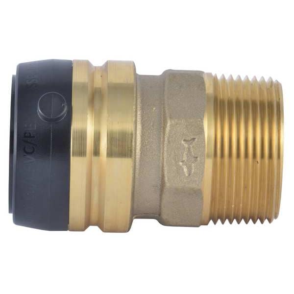 Push-Fit Adapter Fitting, Application Potable Water, Fitting Side A Connection Type Push-to-Connect, Fitting Side B Connection Type MNPT, Fitting Side A Tube Outer Diameter 1 1/4 in, Fitting Side B Tube Outer Diameter 1 1/4 in, Fitting Material Brass, Fitting Thread Size 1 1/4 In., Color Brass, Includes Pre-Applied Thread Sealant Pre-Applied Thread Sealant Not Included, Maximum Operating Pressure 200 psi, Maximum Operating Temperature 200 Degrees F, Overall Length 10 1/8 in