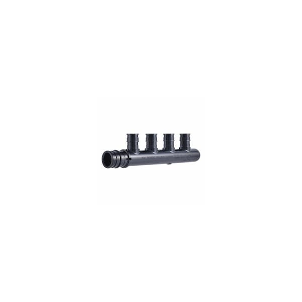 Sharkbite, 3/4in closed trunk with 1/2in branches 4-branch poly PEX expansion multi-Port tee fitting. Multi-port tee allows for easy connection to PEX-A, improving install efficiencies and reducing the risk of installation errors. Minimizes the risk of leaks by eliminating excess connection points. Made from high-performance Acudel Polymer. Connects to PEX-A pipe with expansion rings. Minimum working temperature/pressure: 33 Degrees F at 160 psi. Maximum working temperature/pressure: 210 Degrees F at 150 psi.