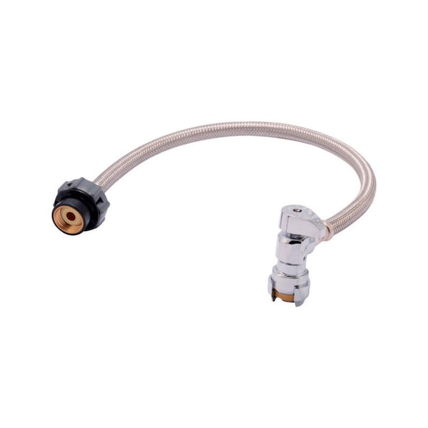 The 1/2 in. SharkBite Click Seal Faucet Connector is the easiest way to install a new Faucet Line. The valve is perfect for potable water and hydronic applications where a shut-off is needed. Just insert the pipe and the stainless steel teeth bite down and grip tight, while a specially formulated O-ring compresses to create a perfect seal. Disassembly is just as fast using the simple disconnect tool so fittings and valves can be easily changed and reused. They can even be rotated after assembly for easier installation in tight spaces. SharkBite Fittings are certified for potable water supply and hydronic heating applications. The "Click" Seal technology also means there is no need for tools, simply turn the Click Seal nut until it clicks and you have a secure seal.