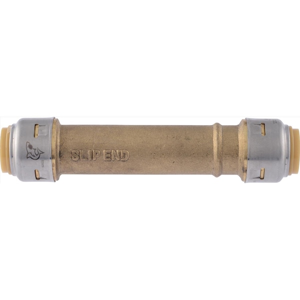 The 1/2 inch SharkBite slip coupling is an innovative repair coupling that allows you to make a quick repair on copper or CPVC Pipe. The slip coupling allows up to 2 inch of damaged pipe to be removed and repaired. Simply insert the slip coupling on to the pipe and using the SharkBite demount clip to slip the fitting back onto the other end of pipe completing the connection. The slip coupling is a great item to have handy for emergency or freeze repairs. The SharkBite connection system requires no solder, clamps, unions or glue. Check out the slip coupling video to see how fast and easy it is to make repairs using the slip coupling and be prepared for the next time a pipe bursts.