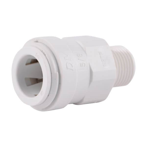 Push connect fittings male connector cts x male 3/8 inches x 1/2 Works with copper, CPVC, PEX, LPDE, MPDE, HDPE and polybutylene tubing in hot and cold water applications. Incorporates stainless steel gripping teeth in the collets, allowing the connectors to interconnect with multiple materials without special tools or tube inserts. Exclusive O-ring guide insures zero-leak connections. Tube orientation can be changed by a simple twist, reducing the amount of tubing required to plumb a water system. Reusable, approved for use behind walls and underground.200psi at 73 degree F or 100psi at 160 degrees F