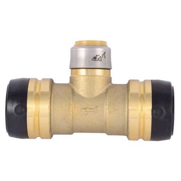 Push-Fit Tee Fitting, Application Potable Water, Color Brass, Fitting Side A Connection Type Push-to-Connect, Fitting Side B Connection Type Push-to-Connect, Fitting Side C Connection Type Push-to-Connect, Material Grade Not Applicable, Includes Pre-Applied Thread Sealant Pre-Applied Thread Sealant Not Included, Fitting Side A Tube Outer Diameter 1 1/4 in, Fitting Side B Tube Outer Diameter 3/4 in, Fitting Side C Tube Outer Diameter 1 1/4 in, Fitting Material Brass