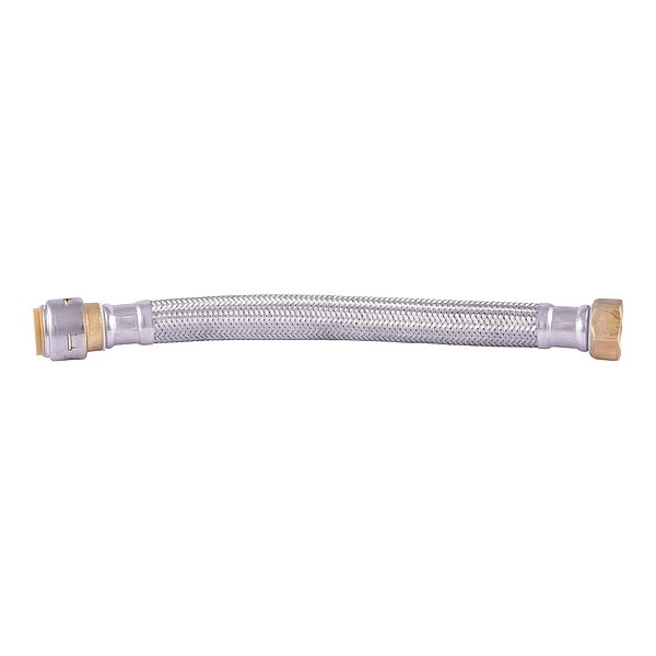 Water Heater Connector, Hose Inside Dia. 11/16 in, Hose Outside Dia. 1 3/10 in, Hose Length 12 in, Hose Tube Material Stainless Steel, Hose Cover Material Stainless Steel, Max. Working Pressure @ 70 F 200 psi, Temp. Range 140 Degrees , Standards ASME A112.18.6/CSA B125.6, NSF/ANSI 14, NSF/ANSI/CAN 372, NSF/ANSI/CAN 61, Hose Fitting A Material Brass, Hose Fitting B Material Brass, Hose Fitting A Type Push-to-Connect, Hose Fitting B Type FIP, Hose Fitting A Size 3/4 in, Hose Fitting B Size 3/4 in